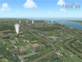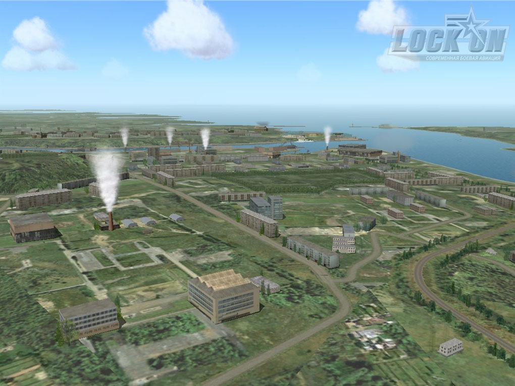 Here is a view that shows the many details of the Lock On landscape: Urban areas, industrial buildings, parks, woods, highways and railways with natural and smooth curves.