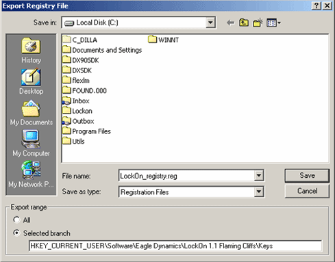 1. Save the LockOn1.1 registry information by the LockOn_Save_Registry utility from lockon.co.uk site. To do it: after you have installed the program, activated it, and have run it at least once, place the utility in the folder, where you want the registry file to be saved and run it. Utility will automatically create the registry file which will be named as lockon_sf_keys_04_13_2005.reg format (04_13_2005 is a date of registry file creation).