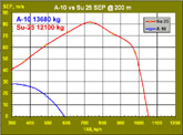 Rate of turn of A-10 and Su-25 in LockOn. Note that A-10 curve is very close to a prop fighter of WWII whereas Su-25 curve is closer to a typical jet-fighter. This curve also suitable for Su-25T with the same mass.