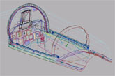When developing 3D aircraft models, there are two opposite objectives to be reached: the maximum similarity to the original aircraft whilst using the minimum number of polygons, parts and texture size. To reach the first objective, there are detailed drawings of aircrafts to use. When there is a lack of detailed drawings, the drawings are produced from sketches and even photos. In this case, the design of the mechanical moving parts of the aircraft is especially difficult, and has to be done by using extrapolations by the designers and 3D artists. This is how the polygonal model of an F/A-18C looks during the 3D design process.