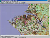 Using stereo-photography and special programs, an elevation map for the terrain is calculated. Using stereo-photography with 10 m resolution, we achieve the 30 m accuracy of the elevations, which fully meets the requirements for flight simulations. Satellite photographs are also used for ground texture preparation. After processing the photographs and paper maps, we get a digital map similar to this picture. The geographic information system (GIS) is applied for processing and storage of such maps.