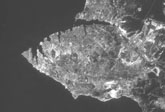 Initially, we worked with space stereo-photography and/or paper maps. 1:200000 scale (2 kilometers in 1 centimeter) is enough for such maps. For satellite photographs, the sufficient accuracy is 10 m (10 meters in 1 pixel). Here is what a satellite photograph with 10 m resolution looks like.