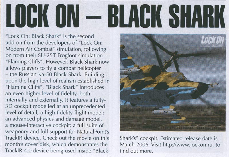 The UK magazine PC Pilot January/February issue has published short review about add-on Black Shark.