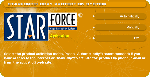 4.3.4. Following item #4.3.3, you may close the StarForce activation window and run the program (by desktop shortcut, from program group shortcut, or by quick start shortcut) for Manual activation.