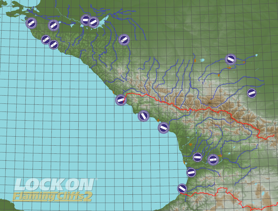 The geographical theatre, which encompasses the western Caucasus region, including Krasnodarsky Krai, Stavropolsky Krai, Republic of Adygea, Karachay-Cherkess Republic, Kabardino-Balkar Republic, Republic of Abkhazia, and Georgia. The added territories of western Georgia are created using a higher-resolution 3D mesh.